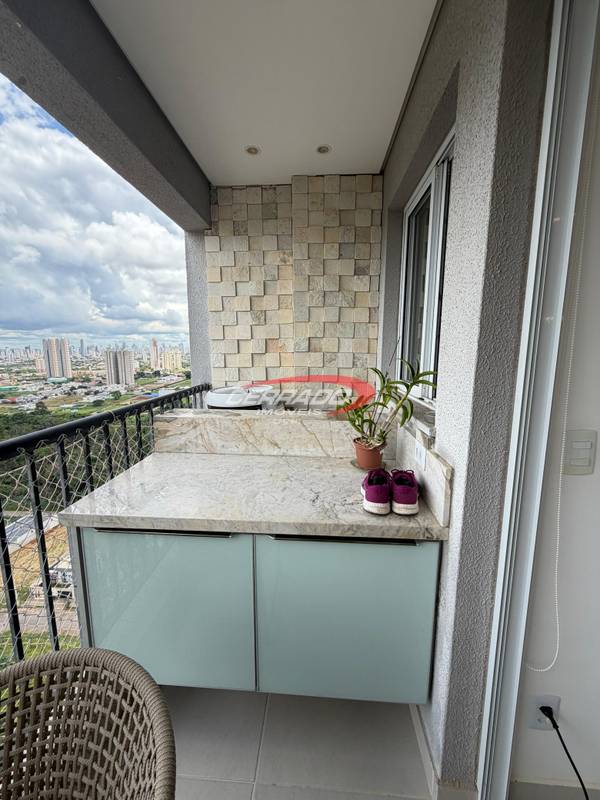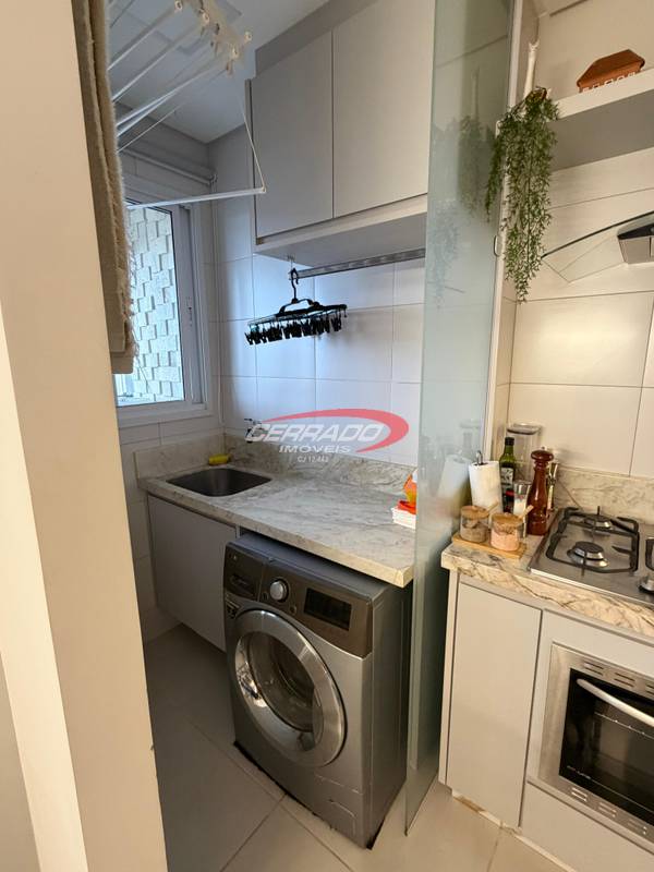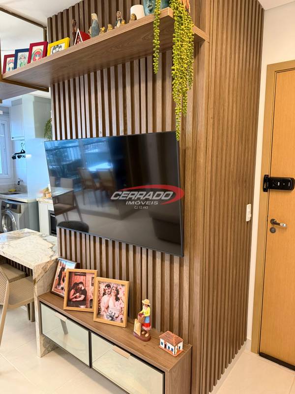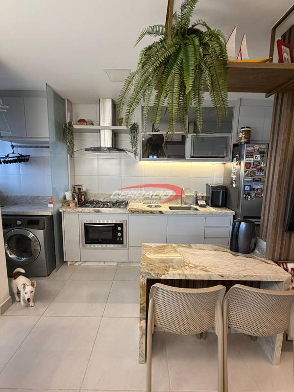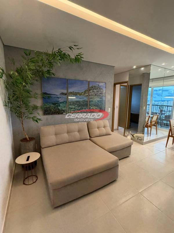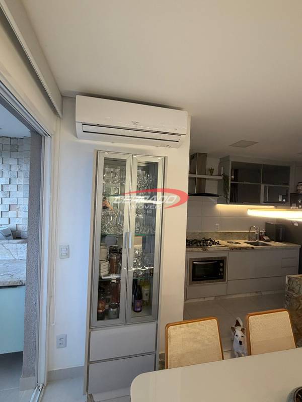 Apartamento com 2 quartos, sendo 1 suíte, armários planejados, banheiro social com armário, sala de estar para dois ambientes com painel , integrada à sacada . A cozinha com armários, coifa, fogão cooktop e forno embutido, além de área de serviço funcional. O imóvel possui projeto de iluminação , 2 ar condicionado de 12 mil btus e cortinas , 1 vaga de garagem.